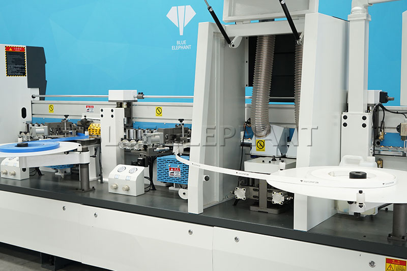 主要功能:預銑-涂膠貼邊1-六輪壓貼-烤燈1-涂膠貼邊2-六輪壓貼-烤燈2-前后齊頭-精修1-精修2-跟蹤修邊-氣動刮邊-平刮-氣動拋光1-氣動拋光2-屏幕一鍵控制前后清洗。